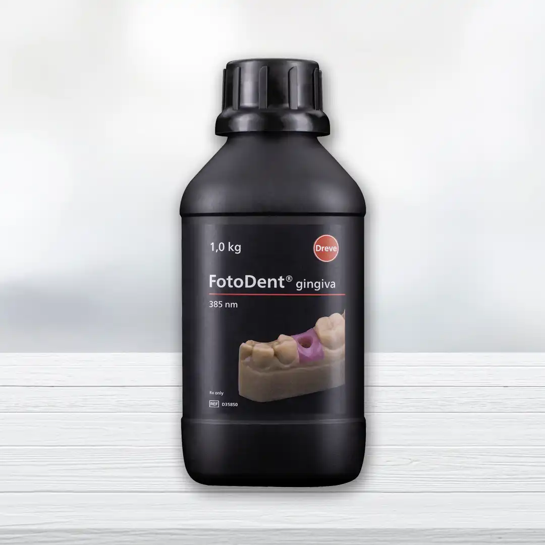 FotoDent® gingiva ist ein flexibles 3D-Druckharz zur Herstellung von künstlichem Zahnfleisch für digitale Modellsysteme. Mit seiner weichelastischen Konsistenz und natürlichen Farbgebung eignet sich das Material ideal zur Simulation gingivaler Strukturen in Modellen für Prothetik, Implantatplanung oder Zahnersatzprüfung. Es ist für UV-Lichtquellen mit 385 nm ausgelegt und optimal in digitale Laborkonzepte integrierbar.